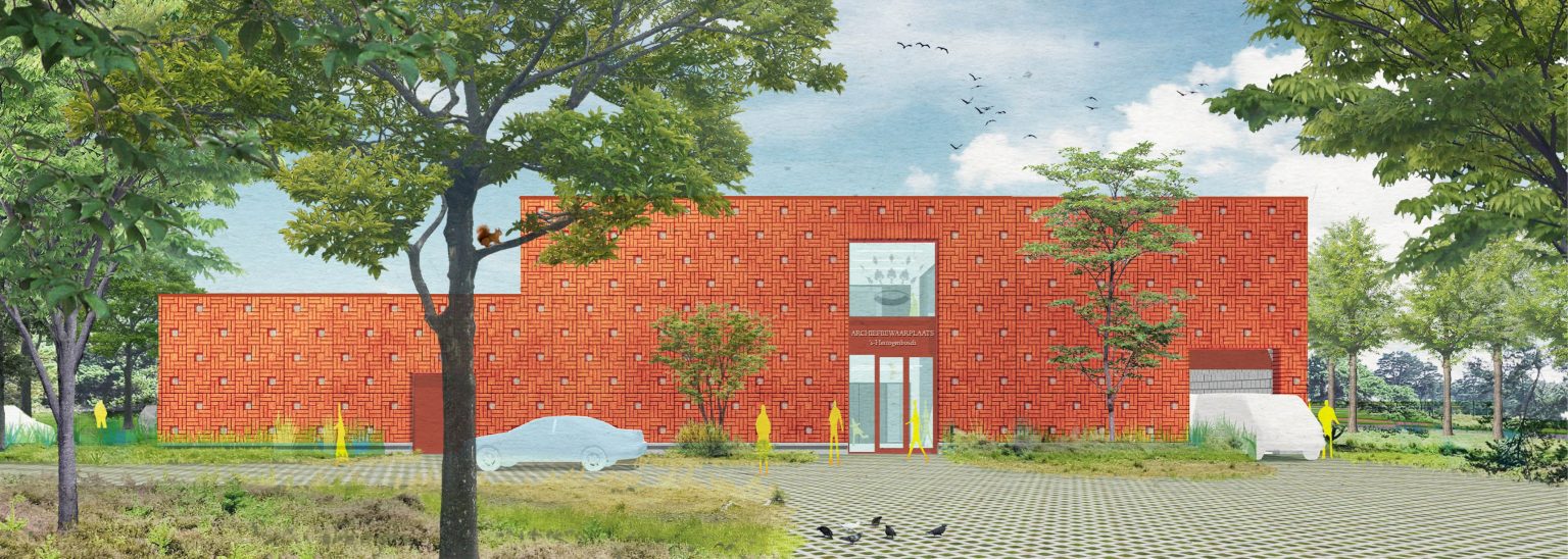 We sturen op meetbare circulariteit, met bijvoorbeeld de Building Circularity Index (BCI). Waar mogelijk passen we losmaakbare constructies, hergebruik van materialen en slimme ruimte-efficiëntie toe. De gevel wordt uitgevoerd in een duurzame steensoort, met spaarzame openingen en geïntegreerde nestkasten voor biodiversiteit. Parkeren gebeurt in een ‘parkeerbos’ onder de kruinen, zodat het gebouw optimaal opgaat in de groene omgeving.